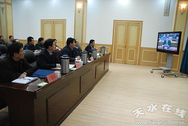 天水市委書記、市人大常委會主任張景輝,市委副書記、市長李文卿,市委常委、紀(jì)委書記楊維俊等在天水分會場收看會議。