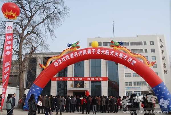 3月21日上午,天水“隴右講堂”揭牌儀式在天水圖書館舉行。中國(guó)作家協(xié)會(huì)副主席、天津作家協(xié)會(huì)主席,當(dāng)代著名作家蔣子龍,天水市委常委、宣傳部長(zhǎng)王光慶,天水市委常委、市委秘書長(zhǎng)蔣曉強(qiáng)等出席揭牌儀式。
