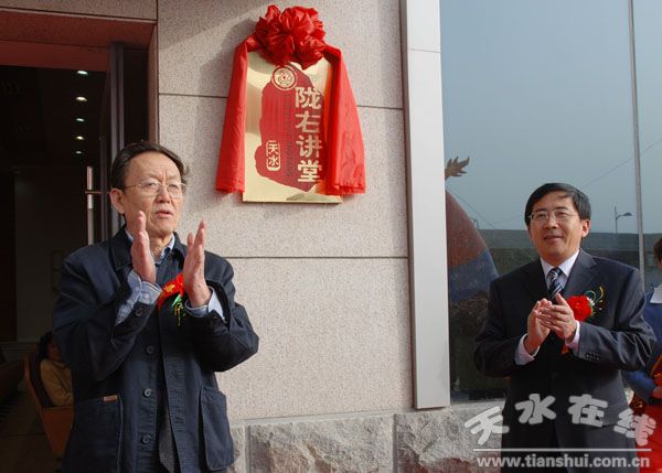 中國(guó)作家協(xié)會(huì)副主席蔣子龍與天水市委常委、宣傳部長(zhǎng)王光慶共同為天水“隴右講堂”揭牌