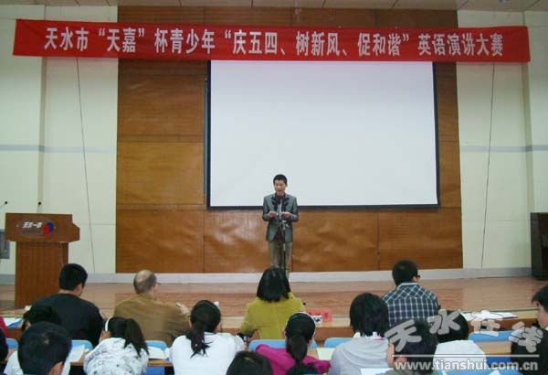為紀(jì)念“五四”青年節(jié),進(jìn)一步培養(yǎng)我市青少年學(xué)習(xí)英語(yǔ)的熱情,活躍校園文化生活,營(yíng)造濃厚的語(yǔ)言學(xué)習(xí)氛圍,4月10日、11日,市委宣傳部、團(tuán)市委聯(lián)合舉辦了天水市青少年“慶五四、樹(shù)新風(fēng)、促和諧”英語(yǔ)演講大賽。這次活動(dòng)作為團(tuán)市委慶“五四”系列活動(dòng)之一,得到了全市各學(xué)校和廣大青少年的積極參與,經(jīng)過(guò)基層學(xué)校的層層選拔,共有500余名同學(xué)參加了比賽。