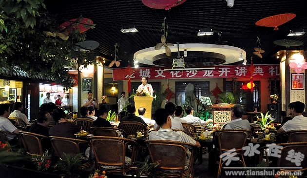 8月6日,關中—天水民間文化論壇——龍城文化沙龍開講典禮在秦州區(qū)茗龍軒茶樓舉行。省委、省政府臺灣事務辦主任趙少智,市人大常委會副主任韓一兵、老干部喬正風出席典禮,市政協(xié)副主席、文化沙龍理事會主席安志宏作了題為《文化需要全民參與》的演講。