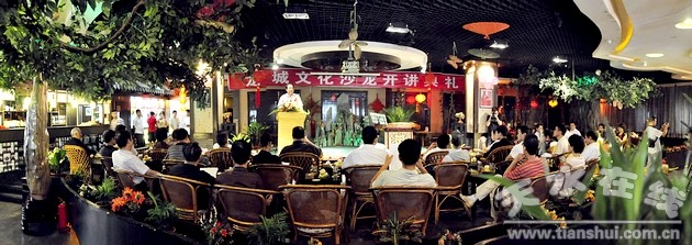 龍城文化沙龍旨在弘揚中華傳統(tǒng)文化,普及科學知識,將以茶文化為基點,用品茗、講座、研討的形式,聚合關中—天水文化界志士,打造大眾文化傳播平臺。以社會大眾和傳統(tǒng)文化愛好者為對象,將定期(每月兩講)邀請省內(nèi)外教授、學者,開辦各類學術(shù)講座、研討會,以國學、易文化、文學、歷史、哲學等為演講內(nèi)容,放眼世界、說古論今、交流思想,以此激發(fā)大眾的愛國熱情,為建設富裕、文明、和諧新天水作出貢獻!