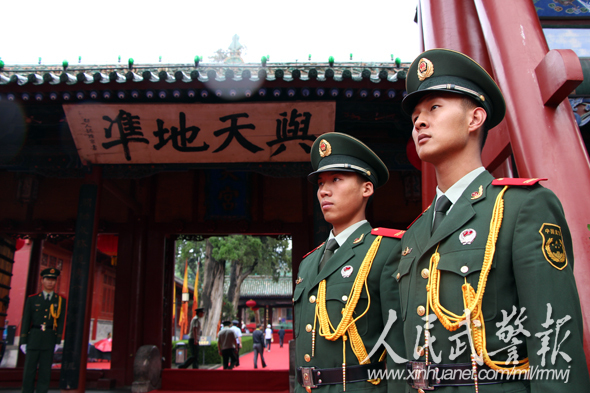 《人民武警報》報道(屈杰文、原志強(qiáng)、高磊)古柏千叢迎赤子,心香一束祭伏羲。6月22日,以“同根同祖,中華公祭”為主題的2013(癸巳)年甘肅省公祭中華人文始祖伏羲大典在天水市伏羲廣場隆重舉行,數(shù)以萬計的海內(nèi)外華人華僑齊聚羲皇故里——天水尋根祭祖。武警甘肅總隊天水支隊出動兵力數(shù)百人(次),圓滿完成了活動現(xiàn)場安全警戒和禮賓任務(wù),贏得駐地黨委政府和各界群眾廣泛贊譽(yù)。