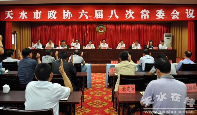 7月10日上午,天水市委副書(shū)記、市政協(xié)主席楊維俊主持召開(kāi)市政協(xié)六屆八次常委會(huì)議。副市長(zhǎng)溫利平應(yīng)邀出席會(huì)議,市政協(xié)副主席王欽錫、安志宏、楊發(fā)元 、何道華、 白曉玲 、竇正安、馬百齡 ,市政協(xié)秘書(shū)長(zhǎng)王振宇出席會(huì)議,市直各有關(guān)部門(mén)負(fù)責(zé)人列席會(huì)議。