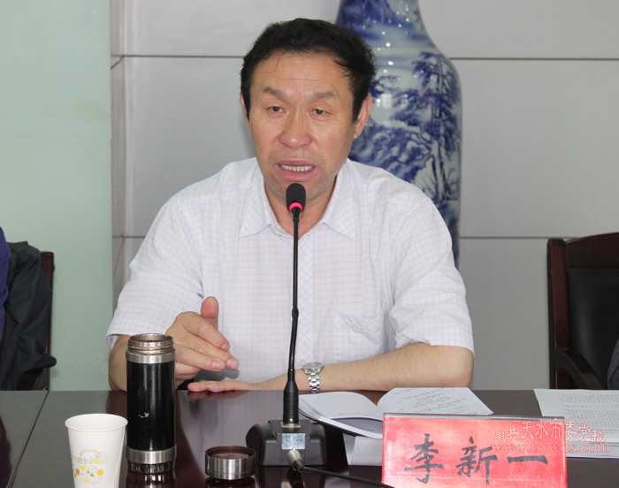 7月11日,中共天水市委黨校召開專題會議,學習貫徹中央及省市黨的群眾路線教育實踐活動工作會議精神。黨委中心組成員及中層以上干部參加會議,常務(wù)副校長、教授李新一作了重要講話。黨委書記、副校長溫欽虎傳達了中央、省、市委教育實踐活動有關(guān)文件精神。