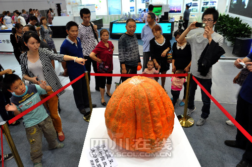 四川在線消息(四川在線記者 李慶 鄭其 攝影 華小峰) “太空蔬菜”是此次科博會(huì)的一大亮點(diǎn),在綿陽(yáng)九州體育館主展區(qū),一重達(dá)188斤的南瓜吸引了眾人眼球,F(xiàn)場(chǎng)負(fù)責(zé)人告訴本網(wǎng)記者,南瓜是源自神舟五號(hào)的太空種子,這次從甘肅專車運(yùn)到綿陽(yáng),運(yùn)輸費(fèi)用達(dá)到5000元。