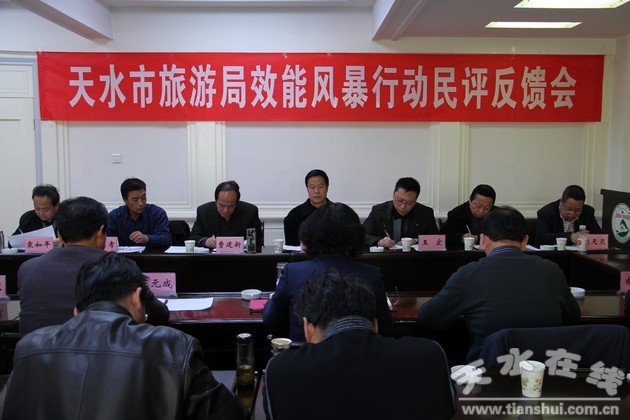 11月30日下午,天水市旅游局召開效能風(fēng)暴行動民主評議反饋會。市紀(jì)委糾風(fēng)辦主任曹建新和五個(gè)行評組組長組成的反饋組,對市旅游局效能風(fēng)暴行動民主評議機(jī)關(guān)作風(fēng)和政風(fēng)活動開展情況及民主測評情況進(jìn)行了反饋。市旅游局全體干部職工參加了反饋會。