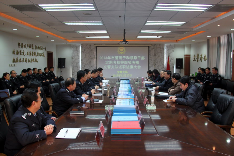 12月27日,市委宣傳部常務(wù)副部長(zhǎng)王小熊帶領(lǐng)市委第四考核組一行六人來到天水交警支隊(duì),對(duì)2013年度支隊(duì)領(lǐng)導(dǎo)班子和市管領(lǐng)導(dǎo)干部履職、執(zhí)行黨風(fēng)廉政建設(shè)責(zé)任制情況,以及“聯(lián)村聯(lián)戶、為民富民”行動(dòng)、效能風(fēng)暴行動(dòng)、基層組織建設(shè)“四項(xiàng)工作”進(jìn)行考核。