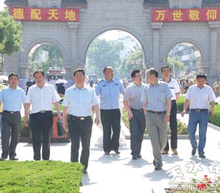 6月17日,天水市副市長(zhǎng)張建杰帶領(lǐng)市委宣傳部、市公安局、市文廣局等部門(mén)及秦州區(qū)負(fù)責(zé)人赴伏羲廣場(chǎng),對(duì)公祭大典環(huán)境布置及伏羲城周邊環(huán)境整治等工作進(jìn)行了現(xiàn)場(chǎng)督查。