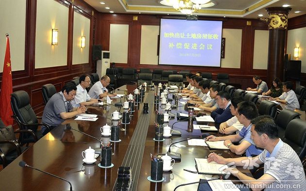 7月29日 ,天水市召開(kāi)加快出讓土地房屋征收補(bǔ)償促進(jìn)會(huì),就如何盡快完成秦州區(qū)藉濱飯店片區(qū)等6宗出讓土地征收補(bǔ)償工作進(jìn)行督促協(xié)調(diào)。副市長(zhǎng)王鈞主持會(huì)議。