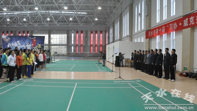 (9月20日上午,天水市第十屆“羽協(xié)•威克多杯”羽毛球大獎(jiǎng)賽在省機(jī)電學(xué)院羽毛球館隆重開賽。)