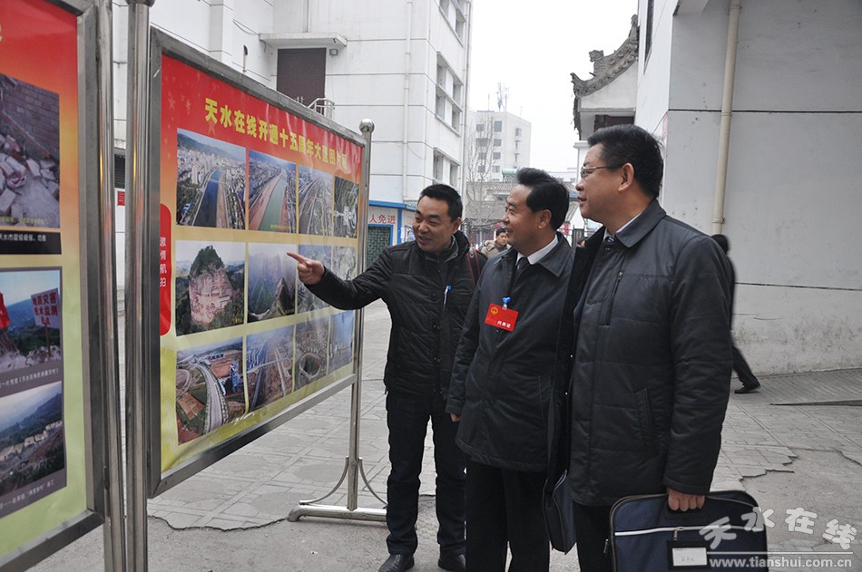 1月15日上午,天水市第六屆人民代表大會(huì)第四次會(huì)議在秦州劇院隆重開(kāi)幕。在會(huì)議開(kāi)始前,副市長(zhǎng)張建杰觀看了“天水在線成立十五周年大型圖片展”。