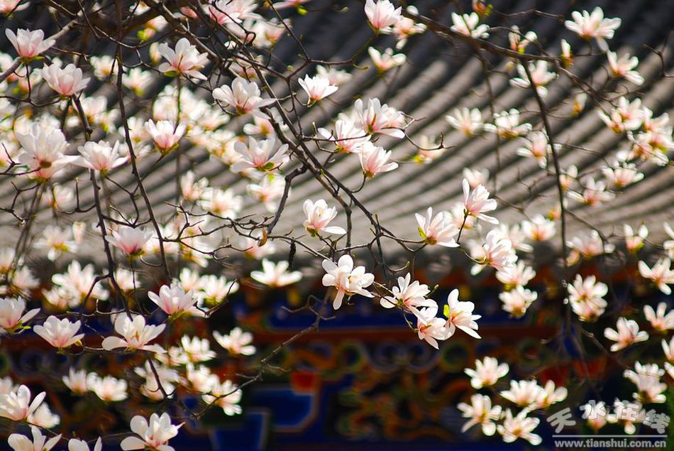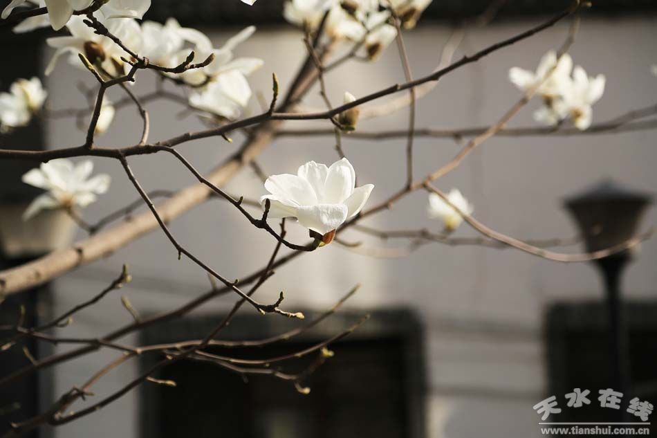 在天水,無論是在市委大院、市政府大院還是在藉水河畔、工廠花壇、農(nóng)家院落里,一株株玉蘭競相開放,把天水的春天點綴的格外迷人芬芳。