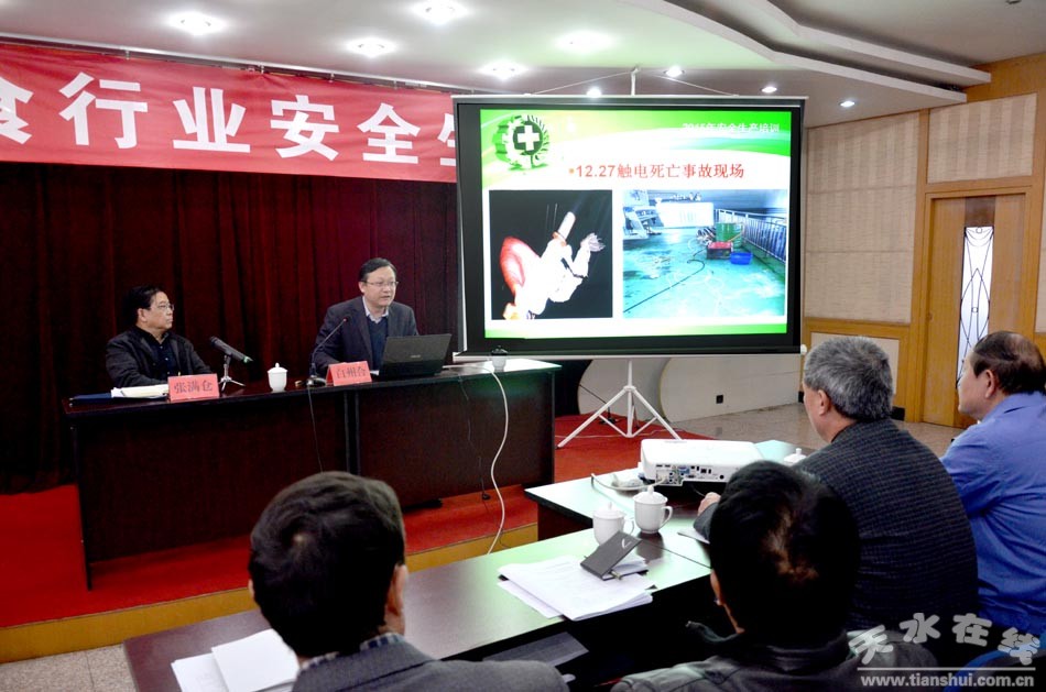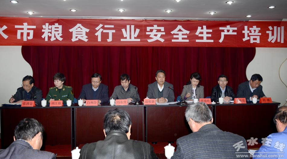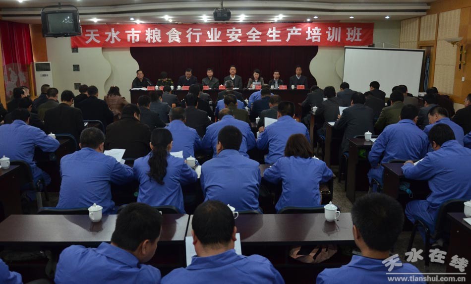 為認(rèn)真貫徹“糧安工程”人才興糧戰(zhàn)略和落實(shí)全市安全生產(chǎn)會(huì)議精神,適應(yīng)新形勢(shì)下糧食安全生產(chǎn)工作要求,3月19日,天水市糧食局在秦州區(qū)舉辦了近百名糧食系統(tǒng)干部職工參加的全市糧食行業(yè)安全生產(chǎn)培訓(xùn)班。