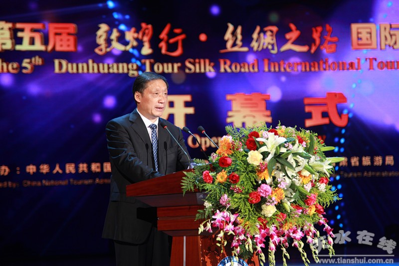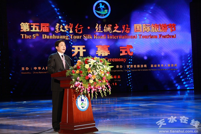 6月16日上午,以“暢游絢麗甘肅,發(fā)展絲路旅游”為主題的第五屆敦煌行·絲綢之路國際旅游節(jié)在嘉峪關(guān)市開幕。甘肅省委書記、省人大常委會主任王三運宣布旅游節(jié)開幕。國家旅游局局長李金早,甘肅省委副書記、省長劉偉平分別致辭。