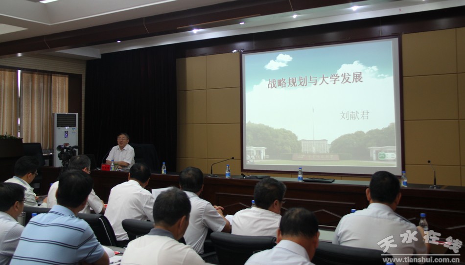 研修班圍繞服務(wù)地方經(jīng)濟(jì)社會發(fā)展和“一帶一路”戰(zhàn)略,深入分析我省當(dāng)前面臨的形勢和任務(wù),研究和探討我省高校在深化高等教育綜合改革、內(nèi)涵建設(shè)和優(yōu)化學(xué)科專業(yè)結(jié)構(gòu)等方面采取的措施、取得的成效、存在的困難和問題以及“十三五”規(guī)劃的思路。研修班特別邀請了華中科技大學(xué)學(xué)術(shù)委員會副主任、原黨委副書記劉獻(xiàn)君教授做了主題為《戰(zhàn)略規(guī)劃與大學(xué)發(fā)展》的專題輔導(dǎo)報告。