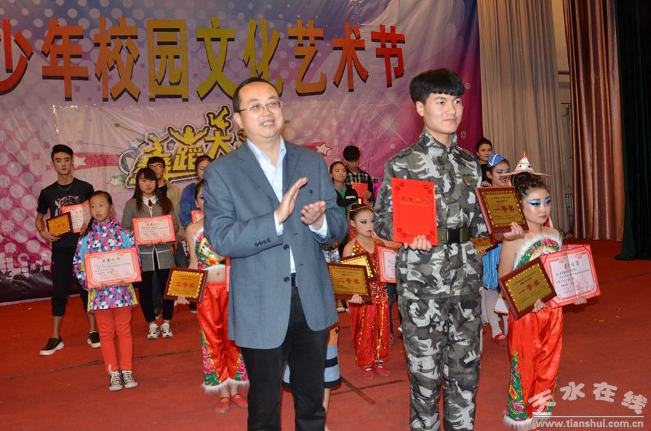 當日,舉行了天水市第四屆青少年校園文化藝術節(jié)——舞蹈大賽決賽,比賽分青年組和少年組,各組共11個選手進入決賽,經(jīng)過激烈比賽,對各組勝出的前三名進行了獎勵。