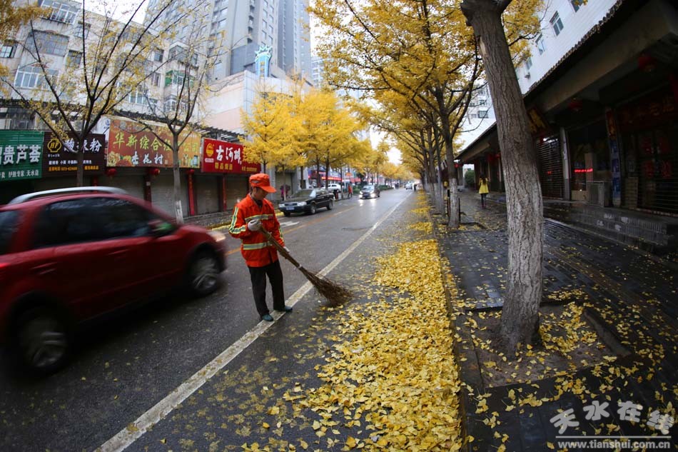 ·天水在線攝影報道:天水城黃葉滿地如詩似畫(圖)
