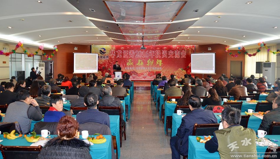 2016年1月16日下午,華龍證券天水廣場(chǎng)營(yíng)業(yè)部“贏在猴年 2016年投資交資流會(huì)”在天水華辰大酒店四樓多功能廳舉行。華龍證券核心客戶和部分金融界人士聆聽(tīng)了報(bào)告。華龍證券分析師深刻的剖析,精彩的講解,贏得了全場(chǎng)客戶和金融人士的陣陣掌聲。也使得他們?cè)诿鎸?duì)2016年市場(chǎng)時(shí)可以從容面對(duì),決勝猴年。