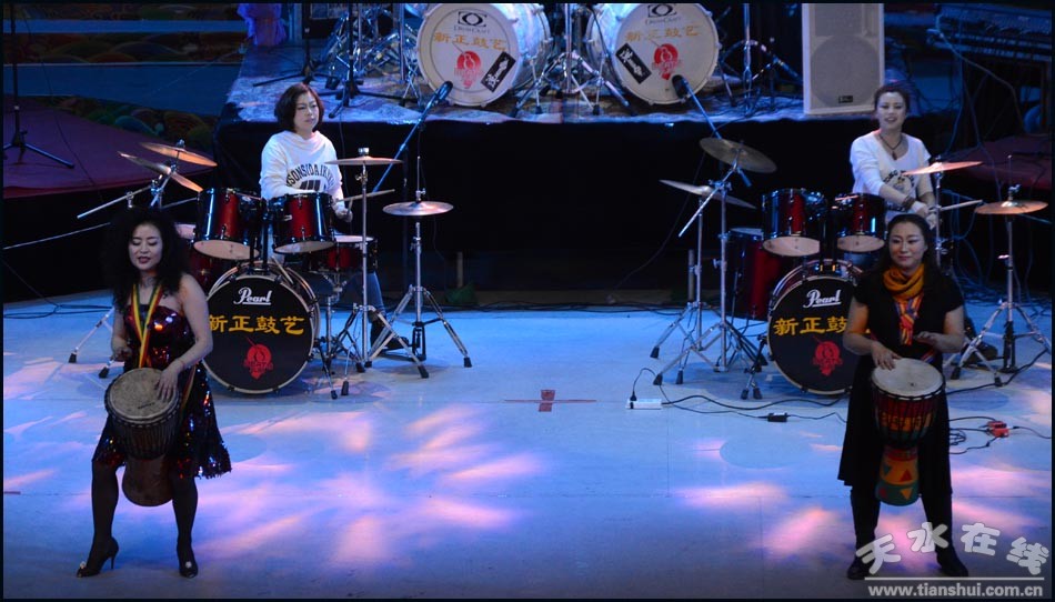 由天水九拍新正鼓藝、蘭州九拍新正鼓藝主辦,中國打擊樂學(xué)會、上海打擊樂學(xué)會、九拍音樂教育全國連鎖機構(gòu)、甘肅省打擊樂協(xié)會、天水市音樂家協(xié)會、天水市打擊樂學(xué)會等承辦,天水在線等協(xié)辦的2016年天水九拍第三屆"天森藥業(yè)"鼓手電視藝術(shù)節(jié)于29日晚在秦州劇院激情上演。