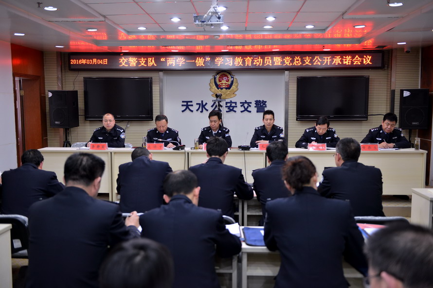 為全面落實(shí)從嚴(yán)管黨治黨責(zé)任,從嚴(yán)規(guī)范黨內(nèi)組織生活,根據(jù)中央和省、市委要求,組織開展學(xué)黨章黨規(guī)、學(xué)習(xí)近平總書記系列講話,做合格黨員的“兩學(xué)一做”學(xué)習(xí)教育活動(dòng)。3月4日,天水市公安局交警支隊(duì)黨總支組織各黨支部黨員民警、入黨積極分子開展 “黨員固定活動(dòng)日” 學(xué)習(xí)教育活動(dòng)。廣大黨員以支部為基本單位,以學(xué)黨章為主題、以公開承諾為規(guī)定動(dòng)作,集中過了一次嚴(yán)肅認(rèn)真的黨內(nèi)政治生活。當(dāng)天上午,支隊(duì)召開黨總支擴(kuò)大會(huì),研究成立了學(xué)習(xí)教育領(lǐng)導(dǎo)小組及辦公室,明確工作人員,專題討論修改“兩學(xué)一做”學(xué)習(xí)教育實(shí)施方案及公開承諾書,研究部署“兩學(xué)一做”學(xué)習(xí)教育及“黨員固定活動(dòng)日”工作。
