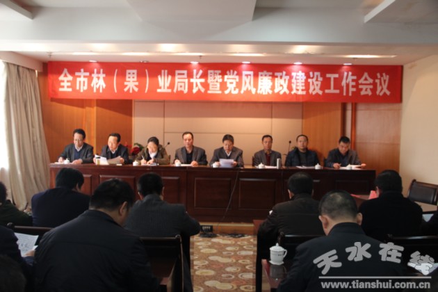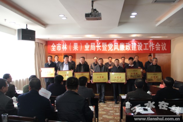 3月5日,天水市召開林果業(yè)局長暨黨風(fēng)廉政建設(shè)工作會議。市林業(yè)局黨組書記,局長王學(xué)鋒主持會議。局黨組成員、各縣區(qū)林果業(yè)局長、局屬各單位負責(zé)人共計80余人參加會議。會議總結(jié)了2015年度全市林果業(yè)各項工作暨黨風(fēng)廉政建設(shè)工作。表彰獎勵了2015年度在全市林果業(yè)工作中做出優(yōu)異成績的和個人。并與各縣區(qū)簽訂了2016年林果業(yè)工作目標(biāo)責(zé)任書。