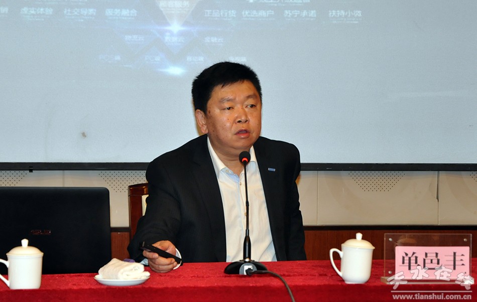 (蘇寧云商集團西北區(qū)執(zhí)行總裁、蘭州大區(qū)總經(jīng)理單邑豐介紹蘇寧模式)