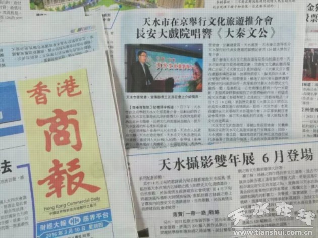 3月7日至3月9日,也是全國(guó)“兩會(huì)”期間,天水市在北京舉辦的天水文化旅游推介、原創(chuàng)歷史秦腔《大秦文公》進(jìn)京演出、“影像絲綢之路—天水國(guó)際攝影雙年展”新聞發(fā)布會(huì)等系列活動(dòng)。備受人民日?qǐng)?bào)(人民網(wǎng))、中央電視臺(tái)(央視網(wǎng))、中央人民廣播電臺(tái)(央廣網(wǎng))、新華網(wǎng)、經(jīng)濟(jì)日?qǐng)?bào)(中國(guó)經(jīng)濟(jì)網(wǎng))、光明日?qǐng)?bào)(光明網(wǎng))、中國(guó)新聞社(中新網(wǎng))、中國(guó)日?qǐng)?bào)、人民政協(xié)報(bào)、中國(guó)國(guó)際廣播電臺(tái)(國(guó)際在線)、中國(guó)文化報(bào)、香港商報(bào)、香港大公報(bào)、中國(guó)西藏網(wǎng)、中青網(wǎng)、新浪網(wǎng)、搜狐網(wǎng)、鳳凰網(wǎng)、優(yōu)酷網(wǎng)、北方旅游網(wǎng)等30多家媒體的關(guān)注,各大媒體除對(duì)活動(dòng)進(jìn)行消息報(bào)道外,還對(duì)天水人文歷史、文化旅游等諸多元素進(jìn)行解讀,社會(huì)反響強(qiáng)烈,有力地提升了天水的影響力、知名度和美譽(yù)度。