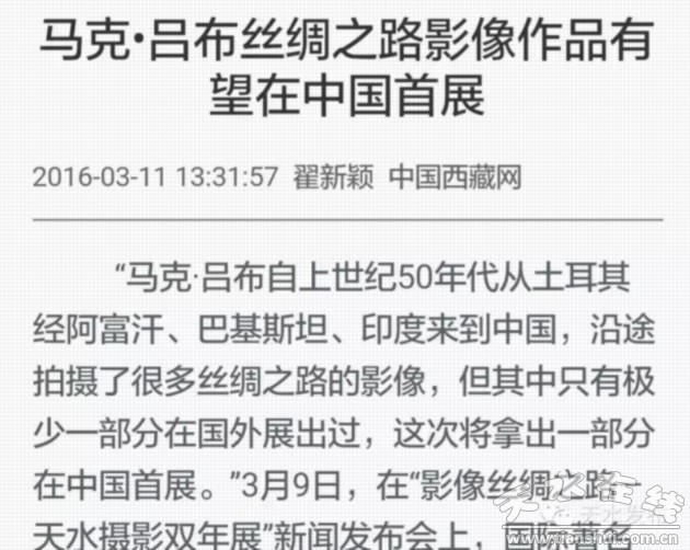 3月9日,國(guó)際在線、央視網(wǎng)、中國(guó)西藏網(wǎng)用較大篇幅 對(duì)“影像絲綢之路——天水?dāng)z影雙年展”的各項(xiàng)活動(dòng)和天水豐厚歷史文化進(jìn)行了拓展性報(bào)道。