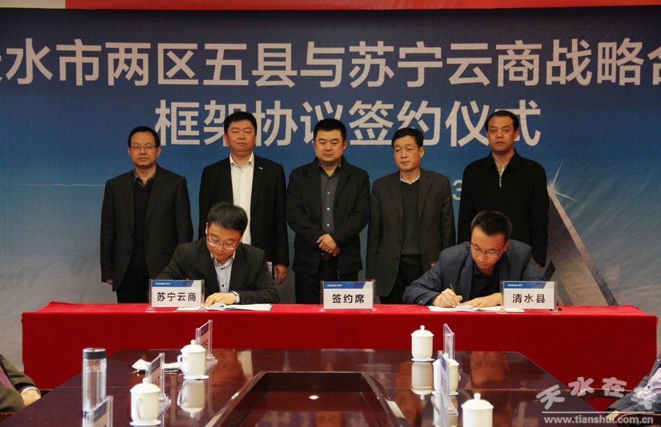 (蘇寧云商集團(tuán)與清水縣商務(wù)局簽署“電商下農(nóng)村進(jìn)社區(qū)”戰(zhàn)略合作框架協(xié)議)