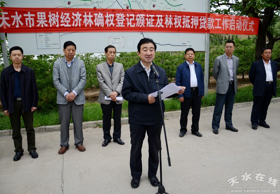 啟動儀式上,市林業(yè)局主要負責人對全市果樹經濟林確權登記頒證及林權抵押貸款工作作了安排部署;麥積區(qū)政府、甘肅銀行天水分行、麥積區(qū)新民蘋果種植專業(yè)合作社負責人進行了發(fā)言。