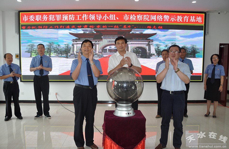 7月6日下午,甘肅省首家網(wǎng)絡(luò)警示教育基地在天水市檢察院開通。天水市委常委、政法委書記趙衛(wèi)東,市檢察院檢察長(zhǎng)張喜啟動(dòng)開通按鈕。