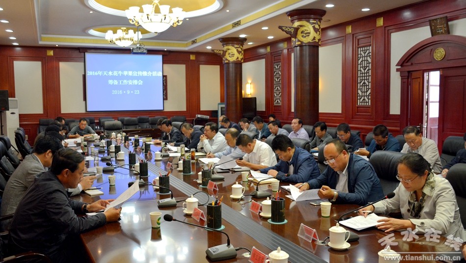 為確保推介活動(dòng)順利舉行,霍衛(wèi)平在會(huì)上強(qiáng)調(diào),各部門、各縣區(qū)要加強(qiáng)組織領(lǐng)導(dǎo),靠實(shí)工作責(zé)任,全力以赴搞好這項(xiàng)活動(dòng);要邀請(qǐng)為天水作出突出貢獻(xiàn)的企業(yè)家、知名人士和有關(guān)專家來參加本次活動(dòng),力求為廣大農(nóng)民朋友搭建一個(gè)良好的銷售平臺(tái);要盡快拿出具體方案,精心組織“花牛蘋果獎(jiǎng)、果品產(chǎn)業(yè)科技專家、果品種植能手、果品標(biāo)準(zhǔn)化示范基地”頒獎(jiǎng)命名活動(dòng);要各負(fù)其責(zé),相互配合,全面做好后勤保障工作;要全面協(xié)調(diào),加強(qiáng)宣傳報(bào)道,搞好推介,力爭把此次活動(dòng)辦成一屆高規(guī)格、高質(zhì)量的盛會(huì)。