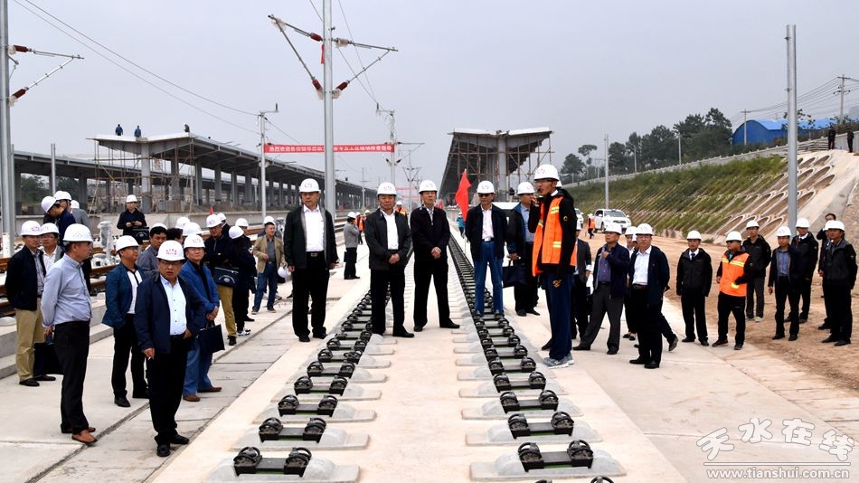 ▲現(xiàn)場觀摩天水南站道岔梁施工現(xiàn)場