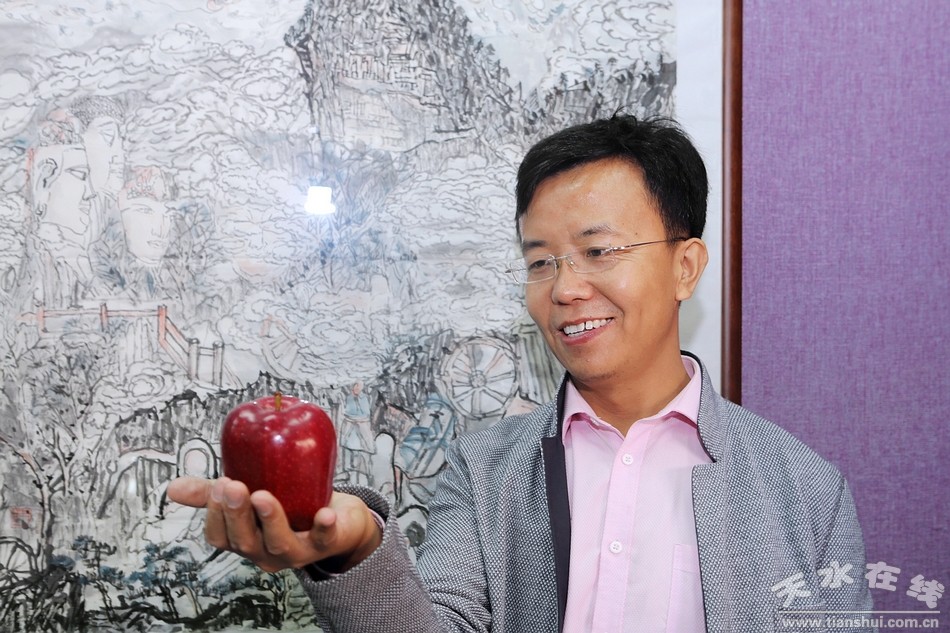 ▲天水市美術(shù)家協(xié)會主席賈利珠為花牛蘋果代言