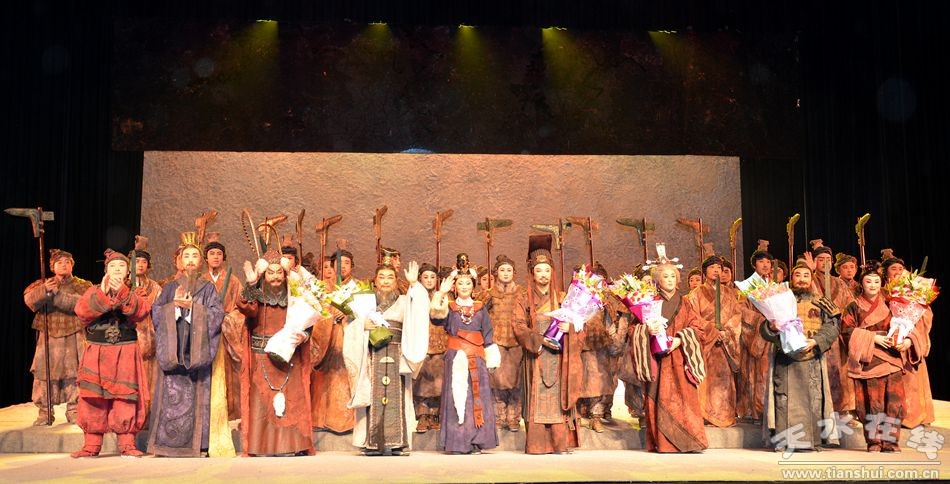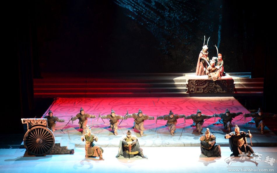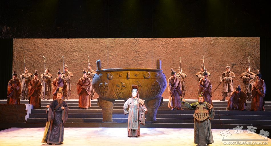 由天水市西秦腔研究院創(chuàng)排的秦腔《大秦文公》是天水市2014年確定的華夏文明傳承創(chuàng)新區(qū)建設(shè)重點(diǎn)文化工程。 該劇以秦國(guó)先祖輔助周平王東遷洛邑為背景,講述了秦侯嬴碩勵(lì)精圖治,嚴(yán)秦法、安百姓、和西戎,率秦人東進(jìn)關(guān)中的故事!洞笄匚墓酚筛拭C省文聯(lián)副主席、著名劇作家曹銳編劇,著名導(dǎo)演韓劍英執(zhí)導(dǎo),國(guó)家一級(jí)演員、“文華表演獎(jiǎng)”、中國(guó)戲劇“梅花獎(jiǎng)”、白玉蘭獎(jiǎng)獲得者邊肖領(lǐng)銜主演,中國(guó)秦腔“四小名旦”袁丫丫、國(guó)家一級(jí)演員常小紅等擔(dān)任主要角色。該劇2014年8月在第七屆中國(guó)西北五省區(qū)秦腔藝術(shù)節(jié)中脫穎而出,一舉榮獲最高獎(jiǎng)“優(yōu)秀劇目獎(jiǎng)”,以及優(yōu)秀編劇獎(jiǎng)、特別優(yōu)秀表演獎(jiǎng)和優(yōu)秀表演獎(jiǎng)等獎(jiǎng)項(xiàng)。