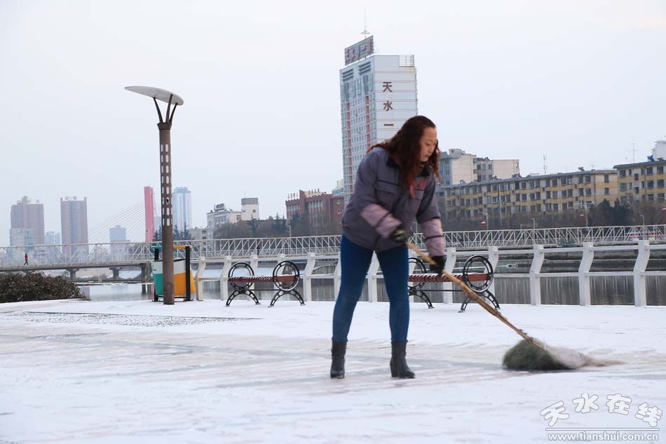 1月11日,農(nóng)歷臘月十四,天水城區(qū)迎來2017年的第三場雪,這場雪比前兩場雪要下的大一些,城區(qū)大街小巷都落下了厚厚的一層積雪,把古城天水裝扮得分外妖嬈美麗。