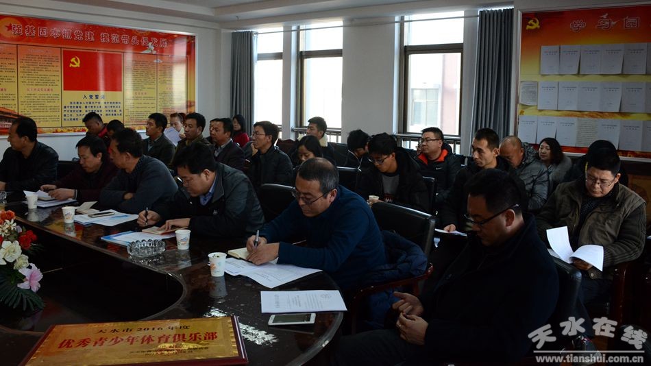 會議聽取了上一任聯(lián)合會主席工作報告,總結(jié)了2016年工作并對2017年度賽事活動及相關(guān)工作進(jìn)行了安排部署。秦州區(qū)、麥積區(qū)、甘谷縣、武山縣、清水縣、張家川縣體育中心負(fù)責(zé)人列席了會議。
