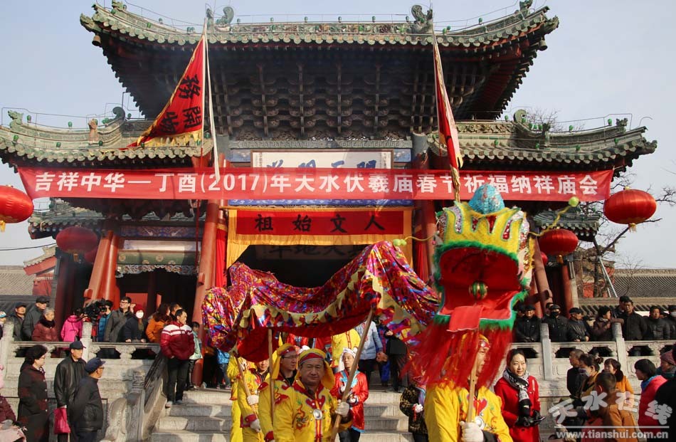 2月9(農(nóng)歷正月十三)日,吉祥中華—丁酉(2017)年天水伏羲廟春祭伏羲活動(dòng)舉行祈福納祥迎圣水儀式。取水供圣儀式結(jié)束后,在伏羲廟大門(mén)對(duì)面的戲樓前舉行了出榜文儀式。之后,方神黑爺像在浩浩蕩蕩儀仗隊(duì)伍的“護(hù)駕”下“巡游”伏羲城。