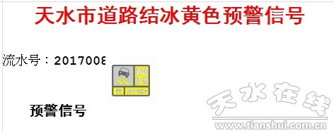 天水市氣象臺2017年2月20日17時00分發(fā)布道路結(jié)冰黃色預(yù)警信號: