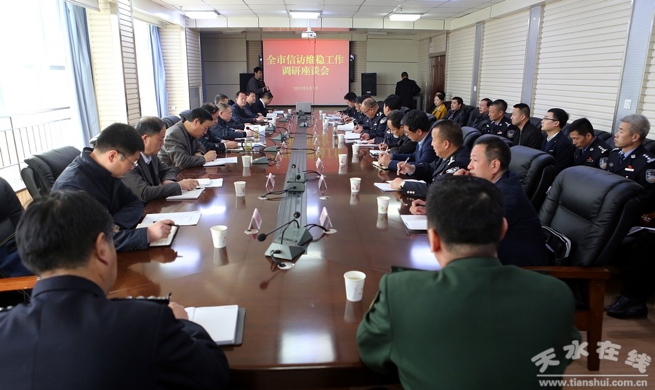 3月1日,天水市委書記王銳帶領(lǐng)市綜治辦、市維穩(wěn)辦、市公安局、市信訪局負責人,對全市信訪維穩(wěn)工作進行了專題調(diào)研。他強調(diào),要以高度的政治責任感和現(xiàn)實緊迫感,盯緊抓牢信訪維穩(wěn)工作,加強矛盾糾紛排查調(diào)處,全面落實防控化解措施,依法妥善處置突出問題,確保全市社會大局和諧穩(wěn)定。市委常委、秘書長、政法委書記蔣曉強一同調(diào)研。