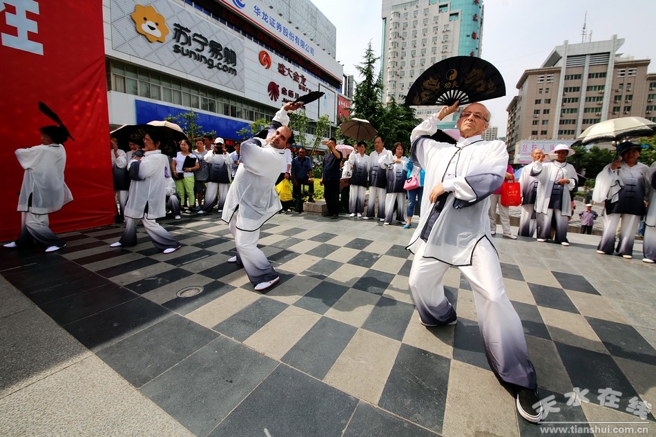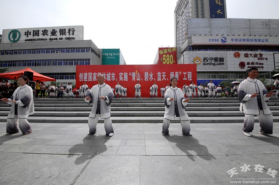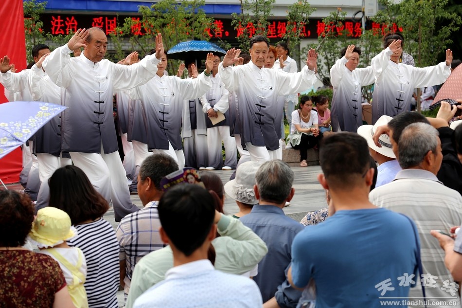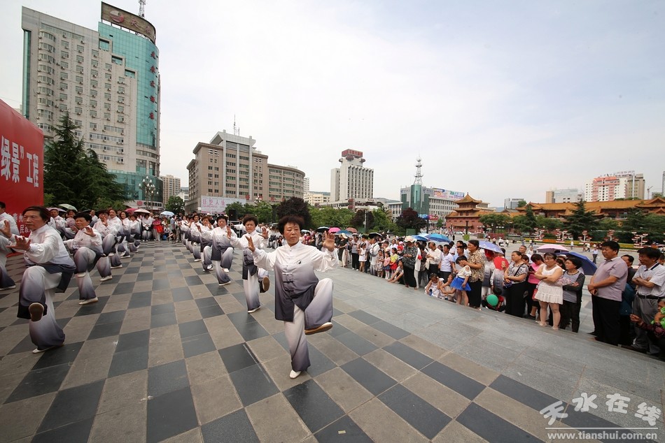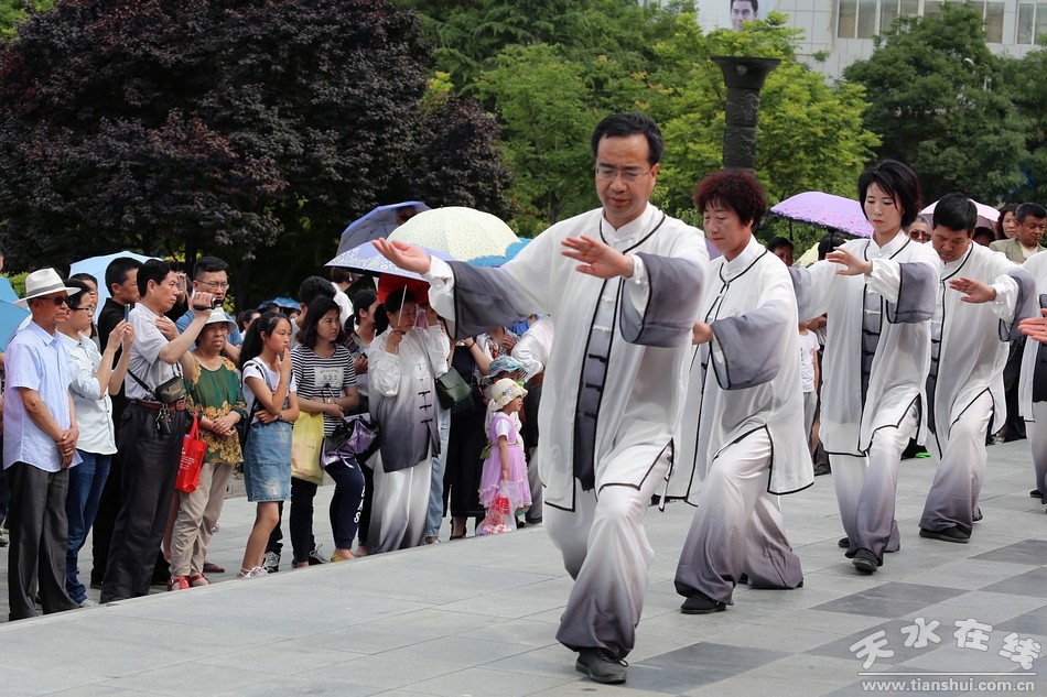 (6月18日下午,“問道伏羲”——羲皇故里伏羲太極拳展演活動在龍城廣場舉行彩排。)
