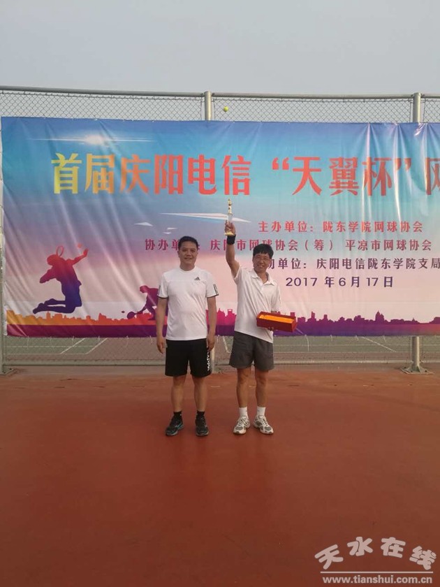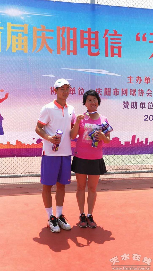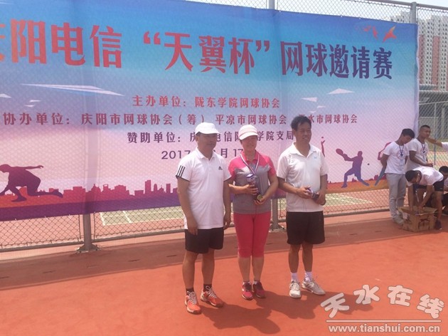 2017年6月16日至18日,由慶陽市網(wǎng)球協(xié)會主辦、隴東學(xué)院承辦、慶陽市電信公司協(xié)辦的首屆慶陽電信“天翼杯”網(wǎng)球邀請賽在隴東學(xué)院舉行。天水市網(wǎng)球協(xié)會精心選派的八名男女運動員參加了此次比賽,經(jīng)過三天的激烈角逐,我市運動員魏玉琴、王利琳包攬了女子單打前兩名;李曉明、魏玉琴及孟曉明、王利琳組合包攬了混合雙打前兩名;康健獲得了男子單打第二名;李曉明、康健組合獲得了男子雙打第二名,天水代表隊團體第二名的優(yōu)異成績。