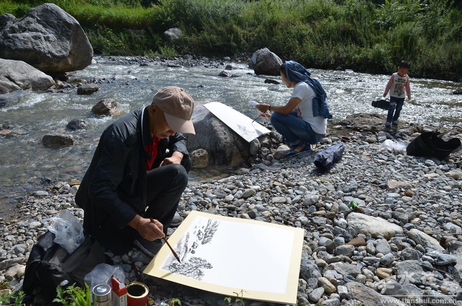 天水在線兩當(dāng)報(bào)道 藝術(shù)來源于生活又高于生活,生動(dòng)的藝術(shù)往往來源于藝術(shù)家對(duì)生活直接體驗(yàn)和對(duì)美好事物的精確捕捉。植被豐茂,青山綠水,物產(chǎn)豐富是隴南市兩當(dāng)縣的特色之一,大自然的鬼斧神工,自然造化,為藝術(shù)家們的藝術(shù)創(chuàng)作提供了無窮的靈感。8月8日,記者就隨天水市美術(shù)家協(xié)會(huì)一行對(duì)野外美術(shù)寫生進(jìn)行了體驗(yàn)。