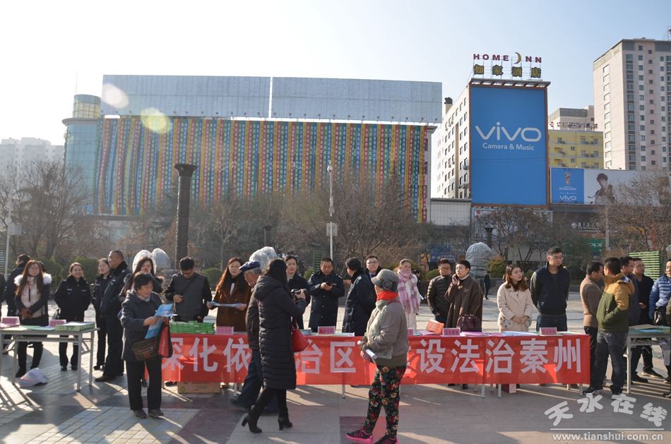 此次集中宣傳活動(dòng),重點(diǎn)學(xué)習(xí)宣傳黨的十九大精神和習(xí)近平總書記關(guān)于全面依法治國(guó)重要論述,中國(guó)特色社會(huì)主義法律體系,《天水市進(jìn)一步健全完善國(guó)家工作人員學(xué)法用法制度的意見》,引導(dǎo)廣大干部群眾把思想和行動(dòng)統(tǒng)一到憲法和全會(huì)精神上來,為全面建成小康社會(huì)努力奮斗。