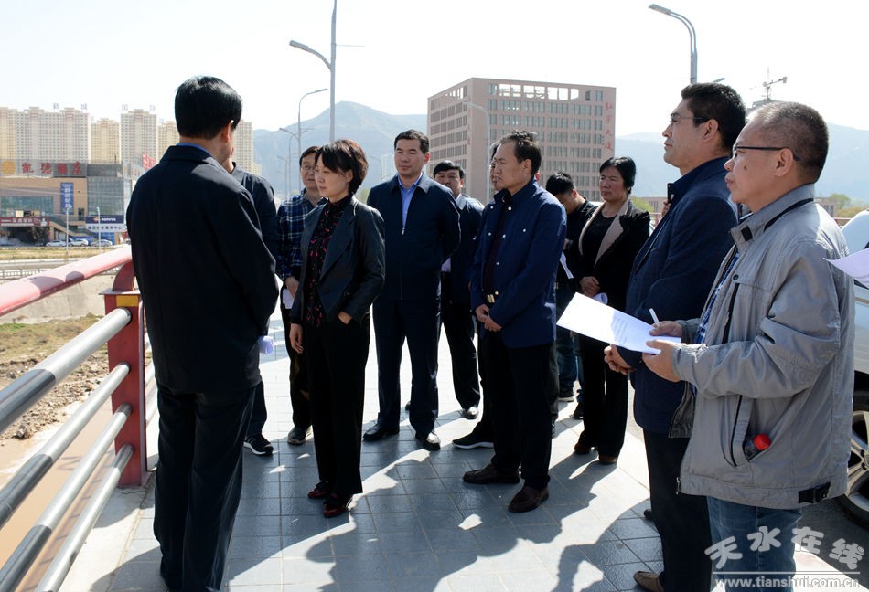 (實地查看甘谷縣渭河河道綜合整治、水域岸線環(huán)境治理和保護工作楊趙渭河大橋段。)