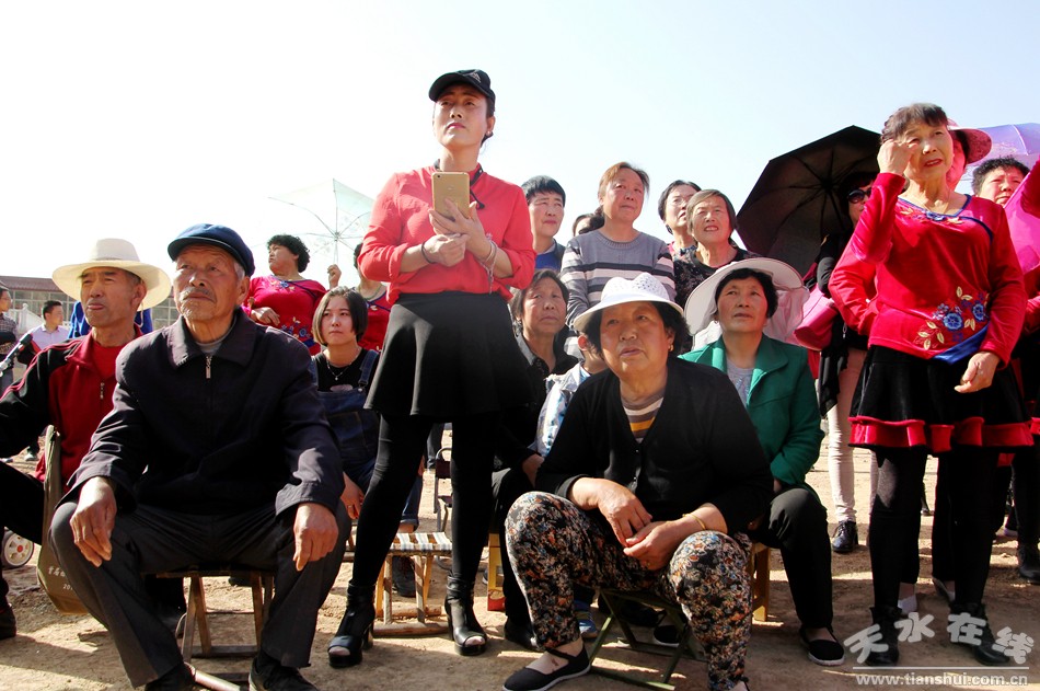 在開(kāi)幕儀式前,來(lái)自天水市歌舞團(tuán)、天水市秦劇團(tuán)、天水藝校、天水白娃娃“國(guó)色花香”組合、天水市空竹運(yùn)動(dòng)協(xié)會(huì)及玉泉鎮(zhèn)左家場(chǎng)村、煙鋪村、暖和灣村、閆河村、石馬坪村、馬蘭村、東方紅村、天水郡村、蓮?fù)ご、冰凌寺村、鹽池村、王家磨村、七里墩村的廣場(chǎng)舞隊(duì)伍進(jìn)行了精彩的表演。