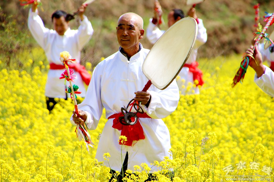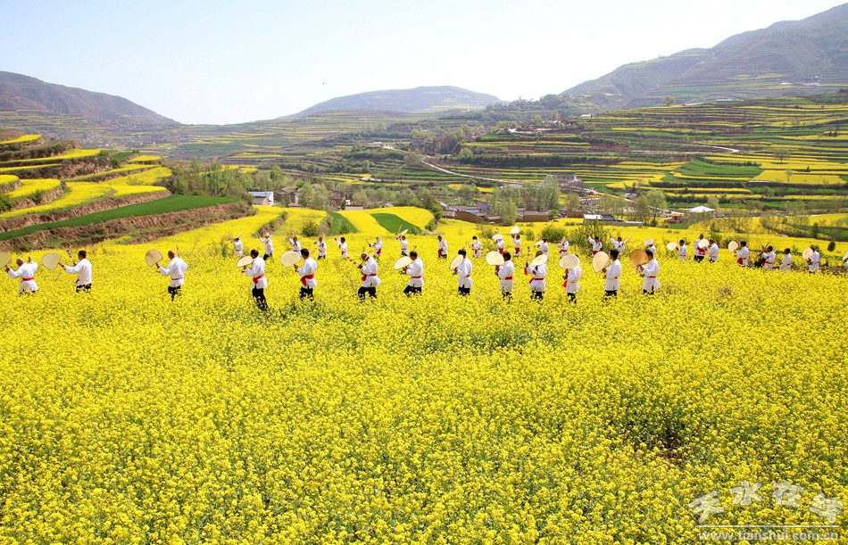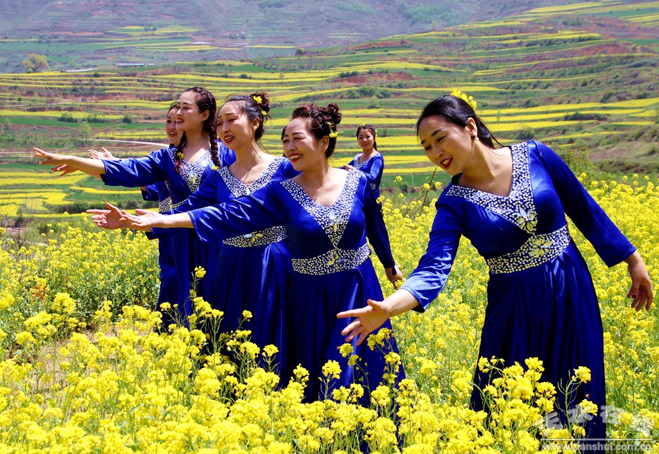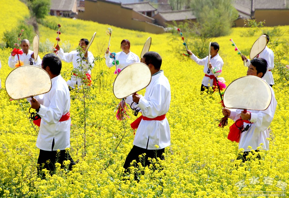 (旋鼓舞 天水在線5月2日攝于龍臺鎮(zhèn)大莊村油菜花田)