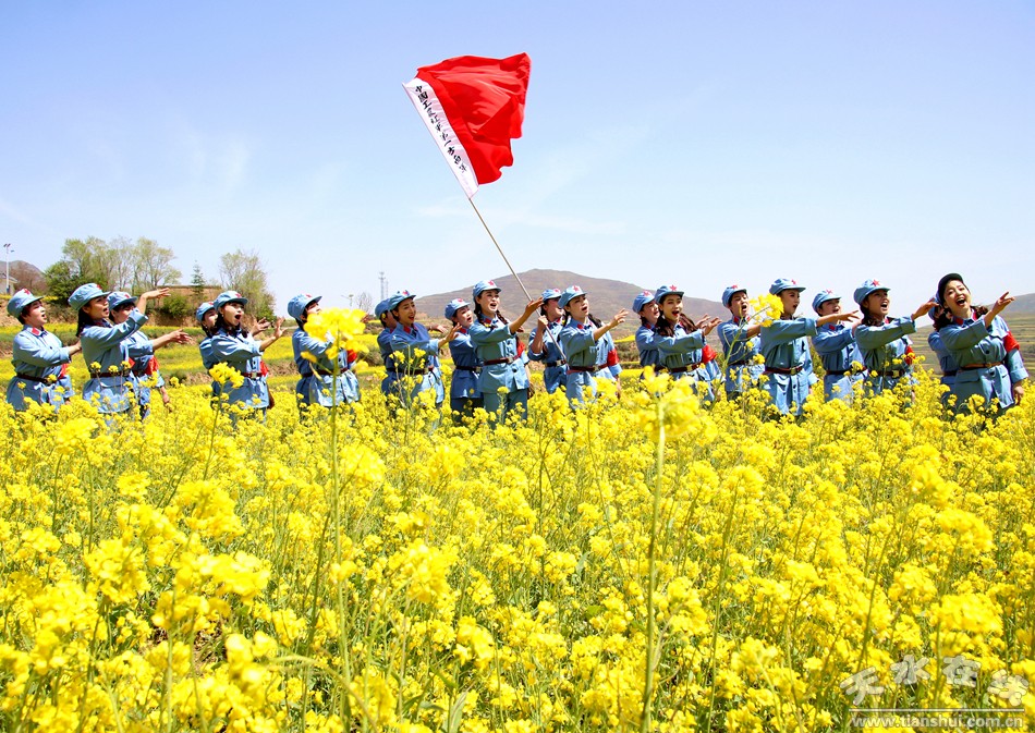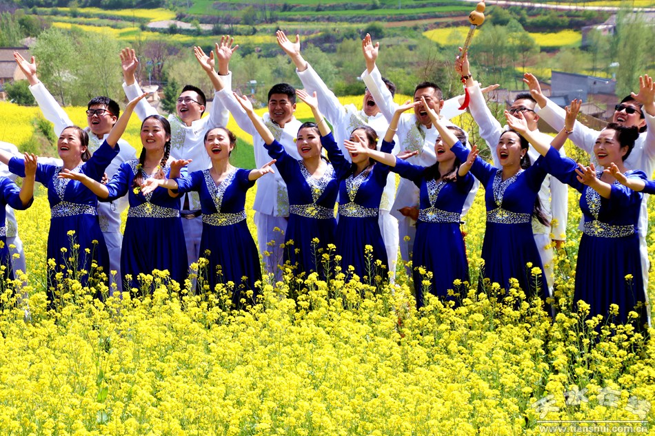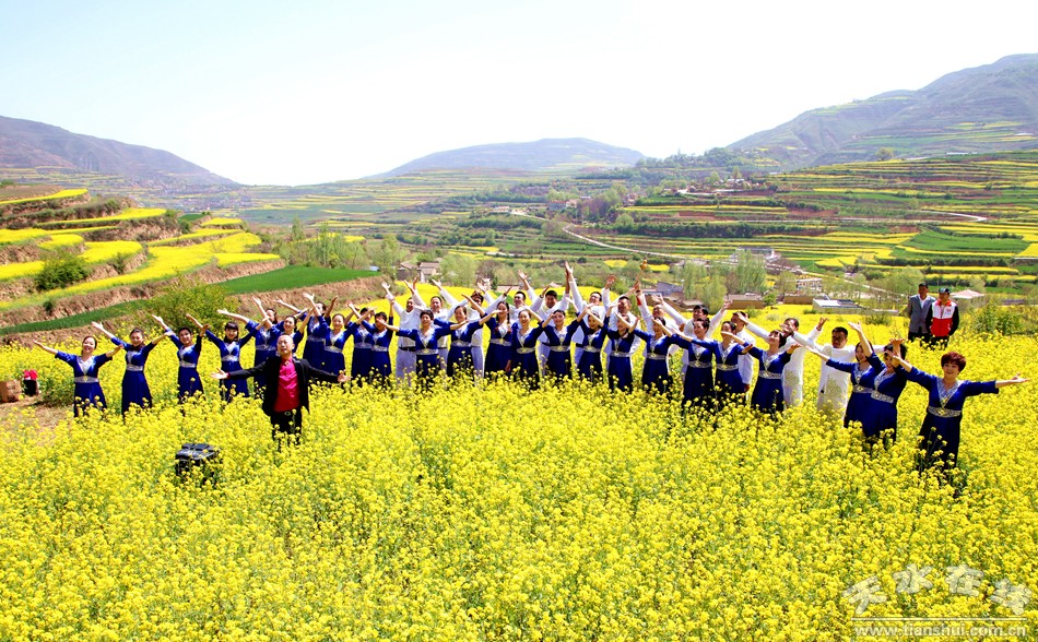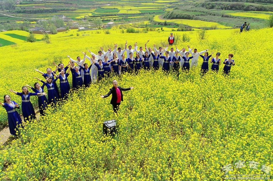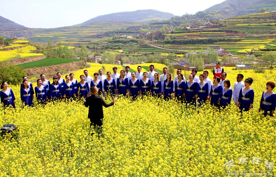 (合唱:《在希望的田野上》 天水在線5月2日攝于龍臺鎮(zhèn)大莊村油菜花田)