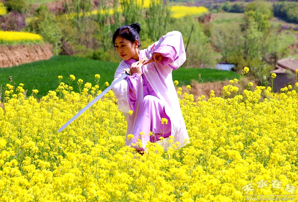 (武術(shù)表演 天水在線5月2日攝于龍臺鎮(zhèn)大莊村油菜花田)
